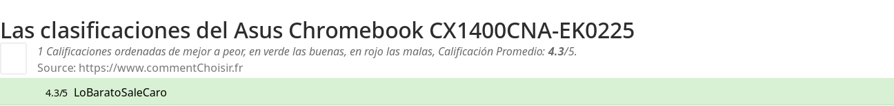 ¿Qué calificación para Asus Chromebook CX1400CNA-EK0225 ?