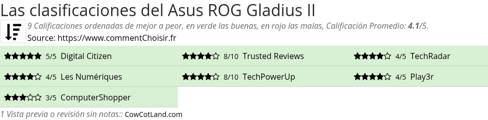 Para una mejor comparación, hemos investigado para usted las ventajas y desventajas de Asus ROG Gladius II y las notas de datos de los sitios especializados.