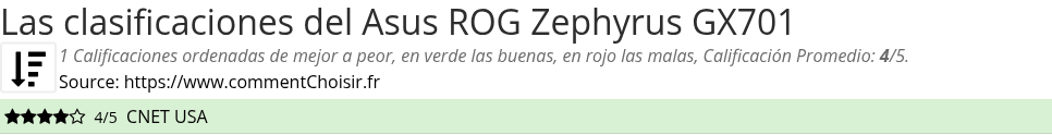 - 1 reseñas y opiniones con 1 valoraciones para el Asus ROG Zephyrus GX701