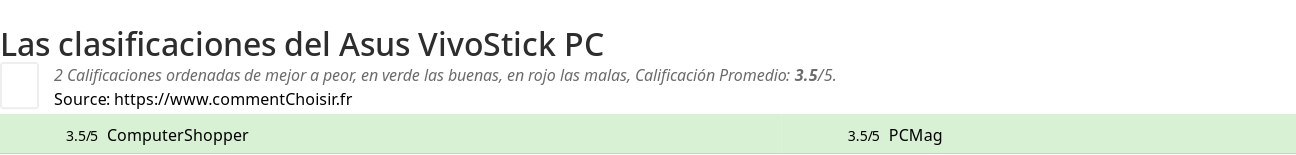 Aquí están las 2 revisiones y pruebas encontradas en el Videojuego Asus VivoStick PC con las 2 calificaciones y comentarios de los evaluadores en su revisión.
