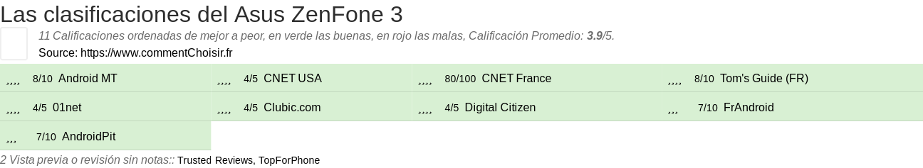 Las calificaciones de los sitios de Internet y las revistas pueden estar sesgadas, al menos con las reseñas de los clientes y los usuarios que compraron Asus ZenFone 3 en Amazon o Fnac, estamos seguros de que tenemos reseñas reales sobre este producto. (los enlaces a las tiendas son patrocinados)
