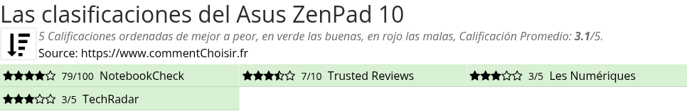 Las calificaciones de los sitios de Internet y las revistas pueden estar sesgadas, al menos con las reseñas de los clientes y los usuarios que compraron Asus ZenPad 10 en Amazon o Fnac, estamos seguros de que tenemos reseñas reales sobre este producto. (los enlaces a las tiendas son patrocinados)