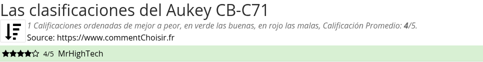 Las calificaciones de los sitios de Internet y las revistas pueden estar sesgadas, al menos con las reseñas de los clientes y los usuarios que compraron Aukey CB-C71 en Amazon o Fnac, estamos seguros de que tenemos reseñas reales sobre este producto. (los enlaces a las tiendas son patrocinados)