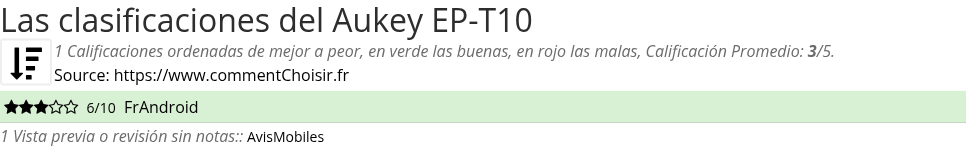 Las calificaciones de los sitios de Internet y las revistas pueden estar sesgadas, al menos con las reseñas de los clientes y los usuarios que compraron Aukey EP-T10 en Amazon o Fnac, estamos seguros de que tenemos reseñas reales sobre este producto. (los enlaces a las tiendas son patrocinados)