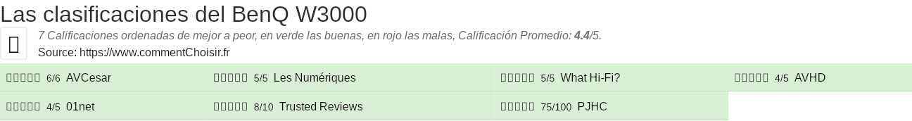 Las calificaciones de los sitios de Internet y las revistas pueden estar sesgadas, al menos con las reseñas de los clientes y los usuarios que compraron BenQ W3000 en Amazon o Fnac, estamos seguros de que tenemos reseñas reales sobre este producto. (los enlaces a las tiendas son patrocinados)