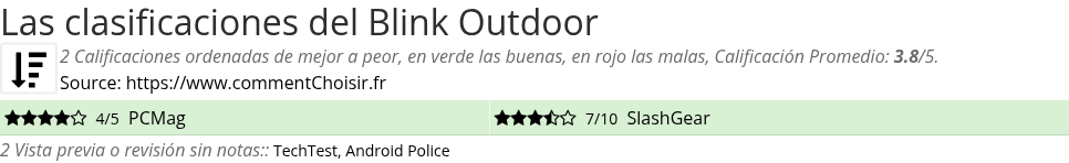 Las calificaciones de los sitios de Internet y las revistas pueden estar sesgadas, al menos con las reseñas de los clientes y los usuarios que compraron Blink Outdoor en Amazon o Fnac, estamos seguros de que tenemos reseñas reales sobre este producto. (los enlaces a las tiendas son patrocinados)