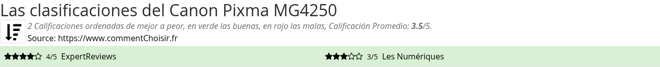 Entre estas pruebas de sitios de Internet y revistas especializadas en Impresora, 2 dieron una calificación y obtenemos una calificación promedio de 3.5/5 para este producto Canon.