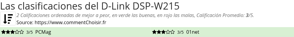 Aquí están las 2 revisiones y pruebas encontradas en el Red de computadoras D-Link DSP-W215 con las 2 calificaciones y comentarios de los evaluadores en su revisión.