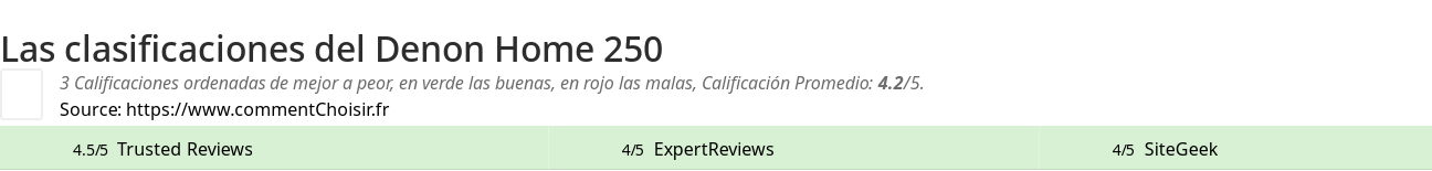Las calificaciones de los sitios de Internet y las revistas pueden estar sesgadas, al menos con las reseñas de los clientes y los usuarios que compraron Denon Home 250 en Amazon o Fnac, estamos seguros de que tenemos reseñas reales sobre este producto. (los enlaces a las tiendas son patrocinados)