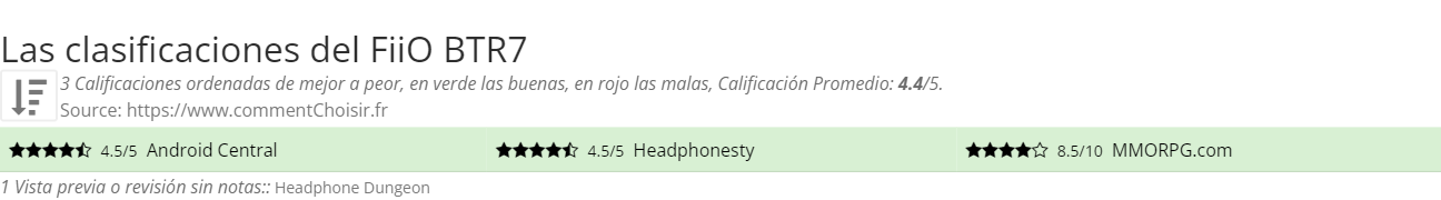 Las calificaciones de los sitios de Internet y las revistas pueden estar sesgadas, al menos con las reseñas de los clientes y los usuarios que compraron FiiO BTR7 en Amazon o Fnac, estamos seguros de que tenemos reseñas reales sobre este producto. (los enlaces a las tiendas son patrocinados)