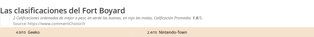 Entre estas pruebas de sitios de Internet y revistas especializadas en Videojuego, 2 dieron una calificación y obtenemos una calificación promedio de 1.5/5 para este producto Fort Boyard.