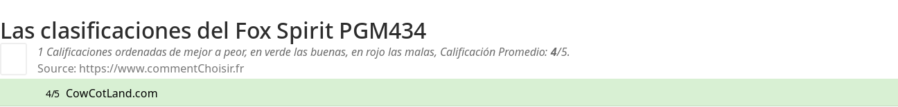 Las calificaciones de los sitios de Internet y las revistas pueden estar sesgadas, al menos con las reseñas de los clientes y los usuarios que compraron Fox Spirit PGM434 en Amazon o Fnac, estamos seguros de que tenemos reseñas reales sobre este producto. (los enlaces a las tiendas son patrocinados)