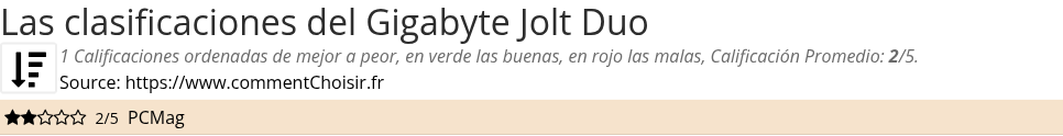 Las calificaciones de los sitios de Internet y las revistas pueden estar sesgadas, al menos con las reseñas de los clientes y los usuarios que compraron Gigabyte Jolt Duo en Amazon o Fnac, estamos seguros de que tenemos reseñas reales sobre este producto. (los enlaces a las tiendas son patrocinados)