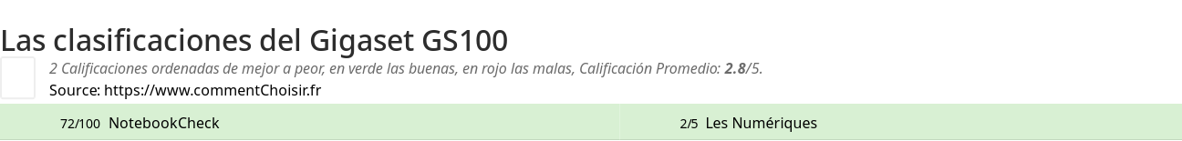 | 72/100 NotebookCheck | 2/5 Les Numériques |