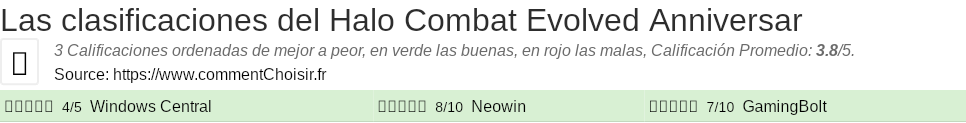 Aquí están las 3 revisiones y pruebas encontradas en el Videojuego Halo Combat Evolved Anniversar con las 3 calificaciones y comentarios de los evaluadores en su revisión.
