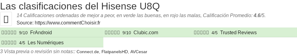 Las calificaciones de los sitios de Internet y las revistas pueden estar sesgadas, al menos con las reseñas de los clientes y los usuarios que compraron Hisense U8Q en Amazon o Fnac, estamos seguros de que tenemos reseñas reales sobre este producto. (los enlaces a las tiendas son patrocinados)
