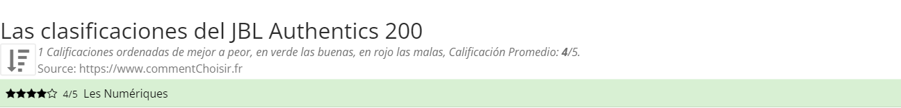 Las calificaciones de los sitios de Internet y las revistas pueden estar sesgadas, al menos con las reseñas de los clientes y los usuarios que compraron JBL Authentics 200 en Amazon o Fnac, estamos seguros de que tenemos reseñas reales sobre este producto. (los enlaces a las tiendas son patrocinados)