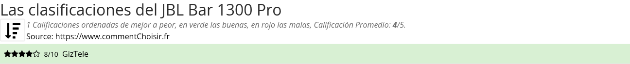 Entre estas pruebas de sitios de Internet y revistas especializadas en Barras de sonido, 1 dieron una calificación y obtenemos una calificación promedio de 4/5 para este producto JBL.