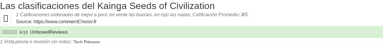 Kainga Seeds of Civilization analisis: Solo hemos encontrado una prueba sobre este producto, por lo que es difícil dar una opinión general y esta calificación de 3/5 no puede ser realmente representativa.
