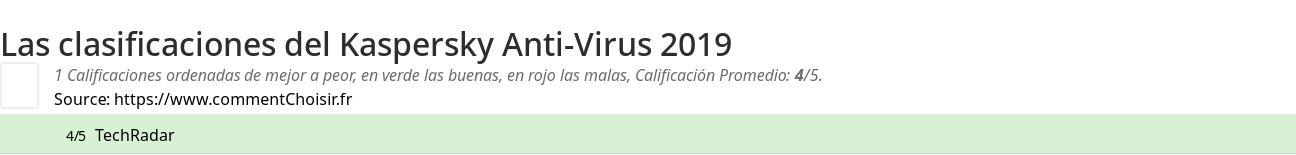 Entre estas pruebas de sitios de Internet y revistas especializadas en Software, 1 dieron una calificación y obtenemos una calificación promedio de 4/5 para este producto Kaspersky.