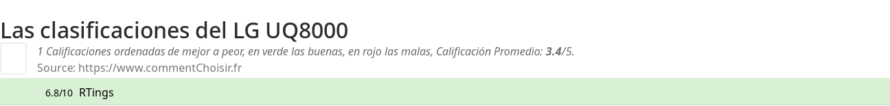 Aquí están las 2 revisiones y pruebas encontradas en el Televisores LG UQ8000 con las 2 calificaciones y comentarios de los evaluadores en su revisión.