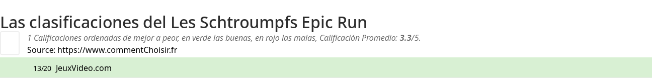 Entre estas pruebas de sitios de Internet y revistas especializadas en Videojuego, 1 dieron una calificación y obtenemos una calificación promedio de 3.3/5 para este producto Les Schtroumpfs.