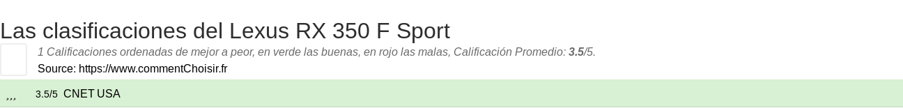 Entre estas pruebas de sitios de Internet y revistas especializadas en Carro, 1 dieron una calificación y obtenemos una calificación promedio de 3/5 para este producto Lexus.
