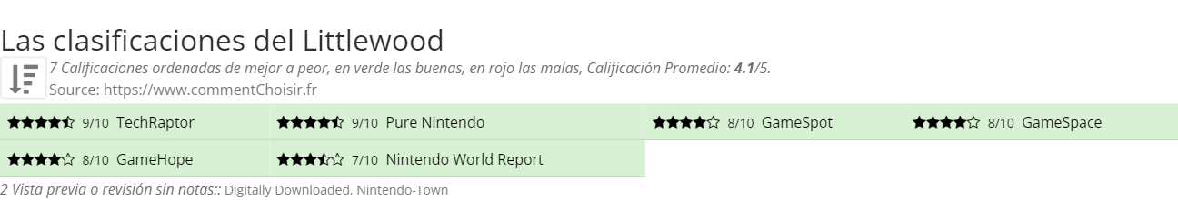 Entre estas pruebas de sitios de Internet y revistas especializadas en Videojuego, 7 dieron una calificación y obtenemos una calificación promedio de 4.1/5 para este producto Littlewood.