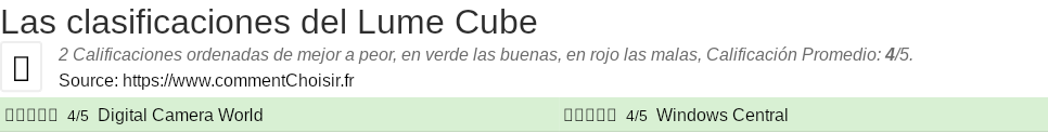 Entre estas pruebas de sitios de Internet y revistas especializadas en Cámara, 2 dieron una calificación y obtenemos una calificación promedio de 4/5 para este producto Lume Cube.