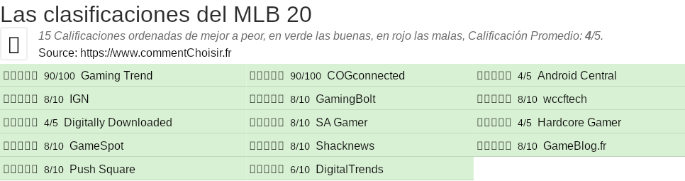 Para una mejor comparación, hemos investigado para usted las ventajas y desventajas de MLB 20 y las notas de datos de los sitios especializados.