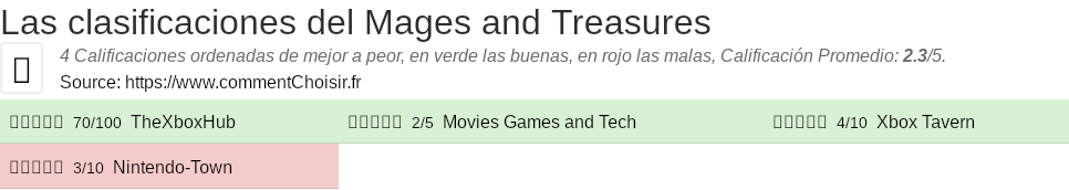 Entre estas pruebas de sitios de Internet y revistas especializadas en Videojuego, 4 dieron una calificación y obtenemos una calificación promedio de 2.3/5 para este producto Mages and Treasures.