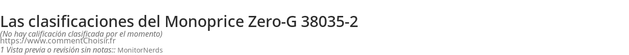 Aquí están las 1 revisiones y pruebas encontradas en el Monitores Monoprice Zero-G 38035-2 con las 0 calificaciones y comentarios de los evaluadores en su revisión.