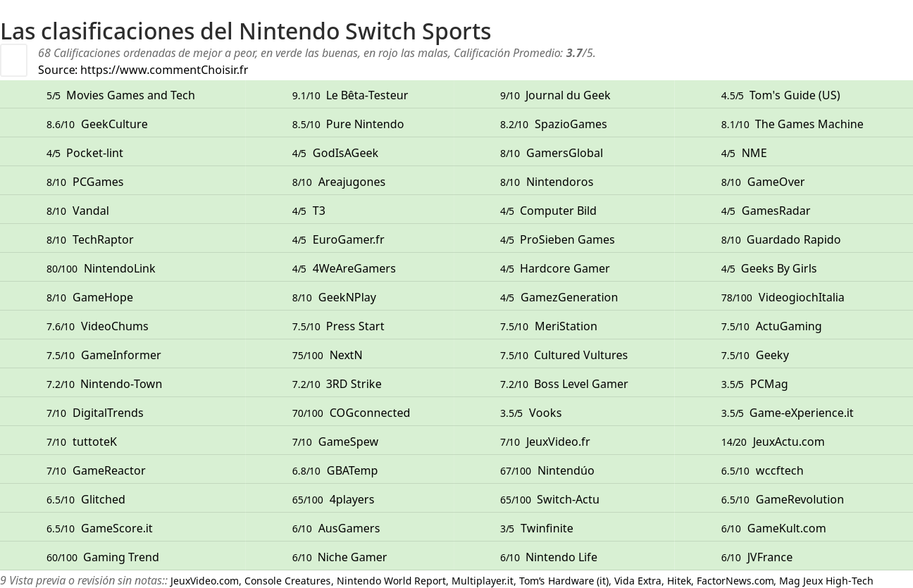 Las calificaciones de los sitios de Internet y las revistas pueden estar sesgadas, al menos con las reseñas de los clientes y los usuarios que compraron Nintendo Switch Sports en Amazon o Fnac, estamos seguros de que tenemos reseñas reales sobre este producto. (los enlaces a las tiendas son patrocinados)