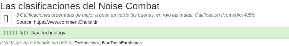 Entre estas pruebas de sitios de Internet y revistas especializadas en Auriculares, 3 dieron una calificación y obtenemos una calificación promedio de 4.5/5 para este producto Noise.
