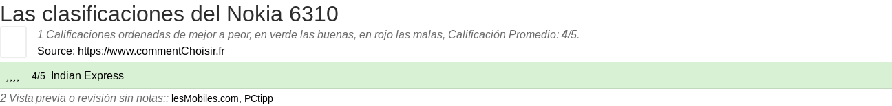 Aquí están las 2 revisiones y pruebas encontradas en el Smartphones Nokia 6310 con las 1 calificaciones y comentarios de los evaluadores en su revisión.