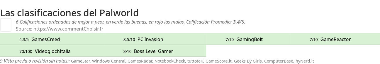 Las calificaciones de los sitios de Internet y las revistas pueden estar sesgadas, al menos con las reseñas de los clientes y los usuarios que compraron Palworld en Amazon o Fnac, estamos seguros de que tenemos reseñas reales sobre este producto. (los enlaces a las tiendas son patrocinados)