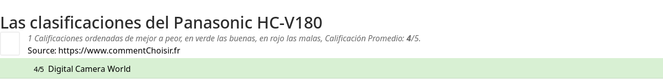Panasonic HC-V180 analisis: Solo hemos encontrado una prueba sobre este producto, por lo que es difícil dar una opinión general y esta calificación de 4/5 no puede ser realmente representativa.