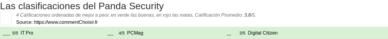 Entre estas pruebas de sitios de Internet y revistas especializadas en Software, 4 dieron una calificación y obtenemos una calificación promedio de 3.8/5 para este producto Panda.