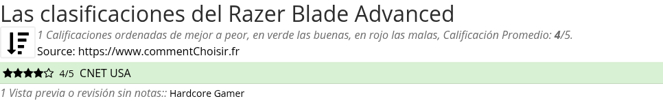 Entre estas pruebas de sitios de Internet y revistas especializadas en Ordenadores portátiles, 1 dieron una calificación y obtenemos una calificación promedio de 4/5 para este producto Razer.