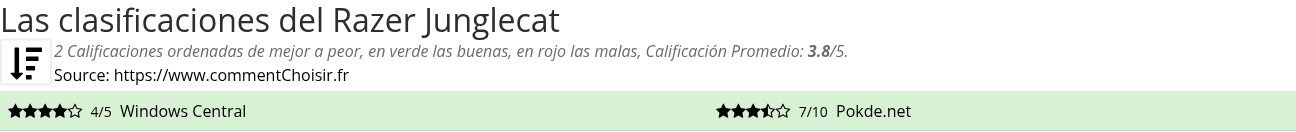 Aquí están las 2 revisiones y pruebas encontradas en el Videojuego Razer Junglecat con las 2 calificaciones y comentarios de los evaluadores en su revisión.
