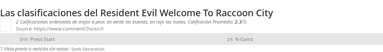 - 3 reseñas y opiniones con 2 valoraciones para el Resident Evil Welcome To Raccoon City