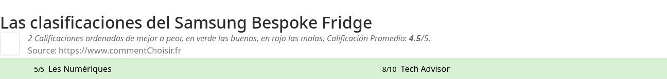Aquí están las 2 revisiones y pruebas encontradas en el Refrigerador Samsung Bespoke Fridge con las 2 calificaciones y comentarios de los evaluadores en su revisión.