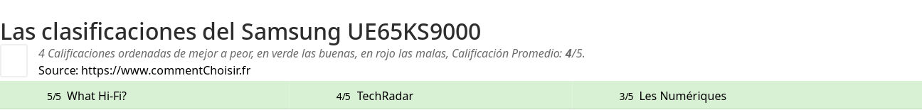 Las calificaciones de los sitios de Internet y las revistas pueden estar sesgadas, al menos con las reseñas de los clientes y los usuarios que compraron Samsung UE65KS9000 en Amazon o Fnac, estamos seguros de que tenemos reseñas reales sobre este producto. (los enlaces a las tiendas son patrocinados)