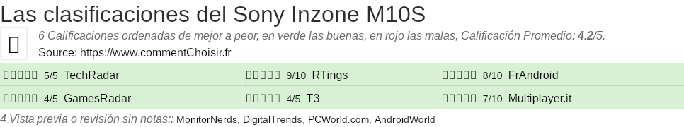 Entre estas pruebas de sitios de Internet y revistas especializadas en Monitores, 6 dieron una calificación y obtenemos una calificación promedio de 4.2/5 para este producto Sony.