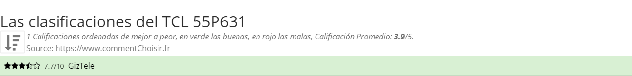 Las calificaciones de los sitios de Internet y las revistas pueden estar sesgadas, al menos con las reseñas de los clientes y los usuarios que compraron TCL 55P631 en Amazon o Fnac, estamos seguros de que tenemos reseñas reales sobre este producto. (los enlaces a las tiendas son patrocinados)