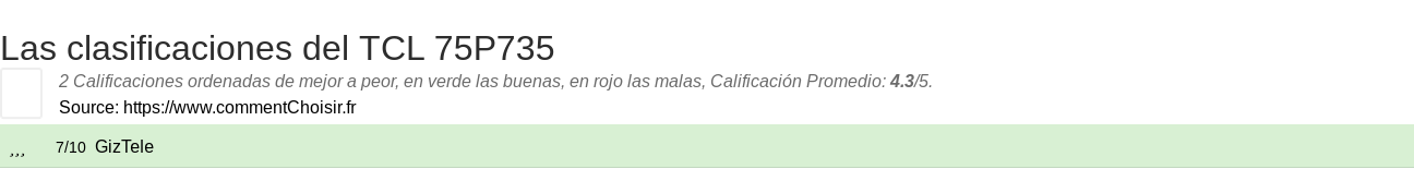 - 2 reseñas y opiniones con 2 valoraciones para el TCL 75P735