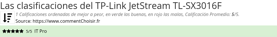 TP-Link JetStream TL-SX3016F analisis: Solo hemos encontrado una prueba sobre este producto, por lo que es difícil dar una opinión general y esta calificación de 5/5 no puede ser realmente representativa.