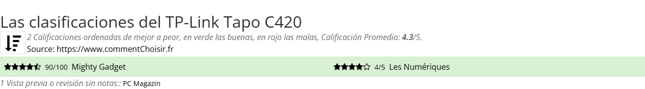 Entre estas pruebas de sitios de Internet y revistas especializadas en Cámara de vigilancia, 2 dieron una calificación y obtenemos una calificación promedio de 4.3/5 para este producto TP-Link.