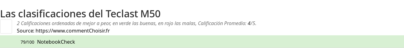 Aquí están las 2 revisiones y pruebas encontradas en el Tableta Teclast M50 con las 2 calificaciones y comentarios de los evaluadores en su revisión.