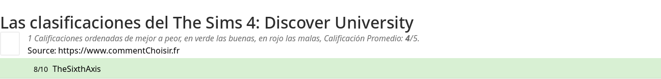 Aquí están las 1 revisiones y pruebas encontradas en el Videojuego The Sims 4: Discover University con las 1 calificaciones y comentarios de los evaluadores en su revisión.